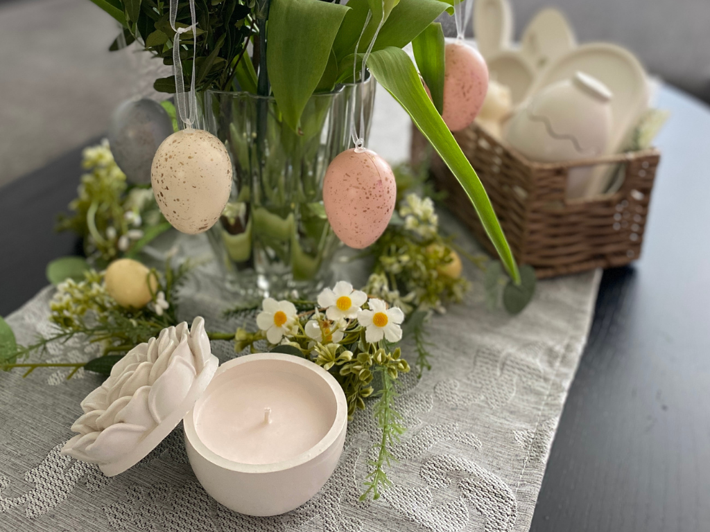 3. Sadrové doplnky a tematické sviečky pre dokonalý jarný "vibe"