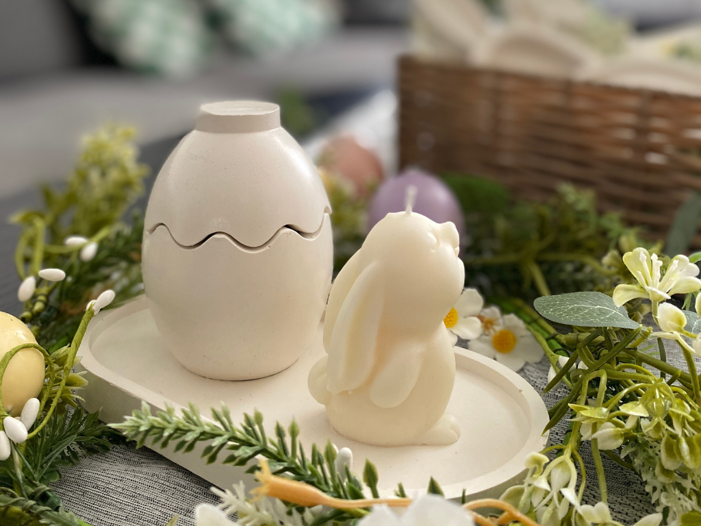 - Tip pre moderný minimalizmus: Naším favoritom je set sádrového podstavca a sviečky v tvare veľkonočného zajka. Tento rozkošný, ručne odlievaný detail okamžite vnesie do interiéru jarnú hravosť, pričom vďaka čistým líniám sádry dokonale rešpektuje vašu minimalistickú estetiku.