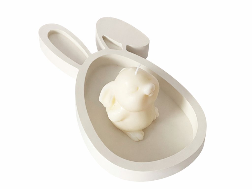 Dekoratívna veľkonočná sviečka v tvare zajka vyrobená zo 100 % sójového vosku bez vône, umiestnená na sádrovom podstavci. Jemný dizajn vytvára príjemnú jarnú atmosféru a stane sa štýlovým doplnkom vášho interiéru či veľkonočnej výzdoby.